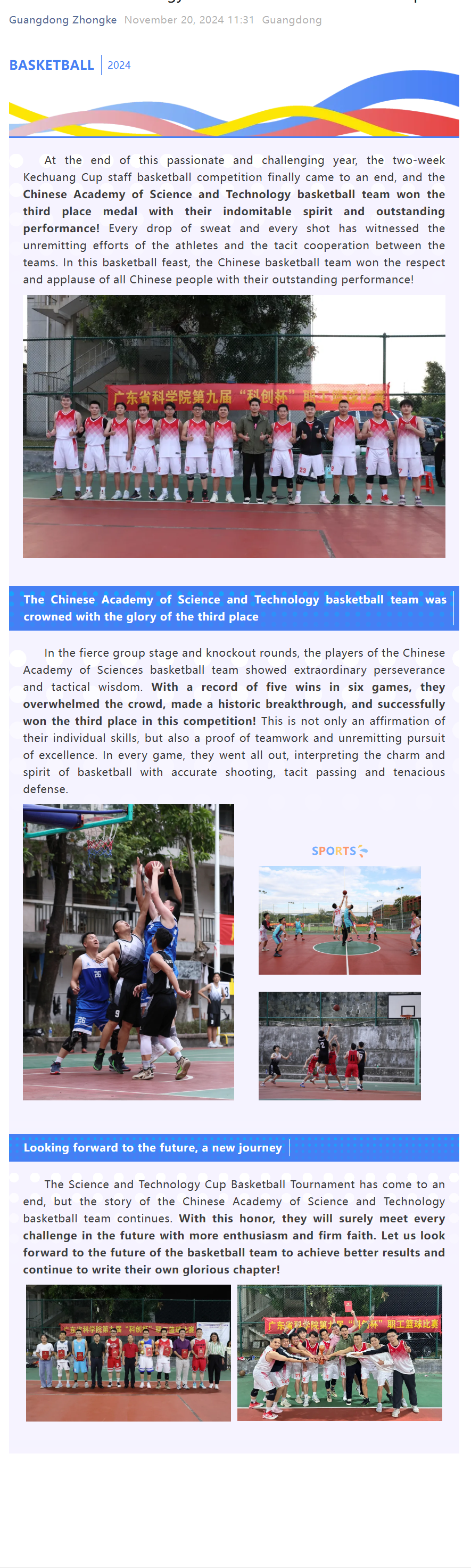 The Science and Technology Innovation Cup Basketball Tournament ended successfully, and the Chinese Academy of Science and Technology basketball team won the third place