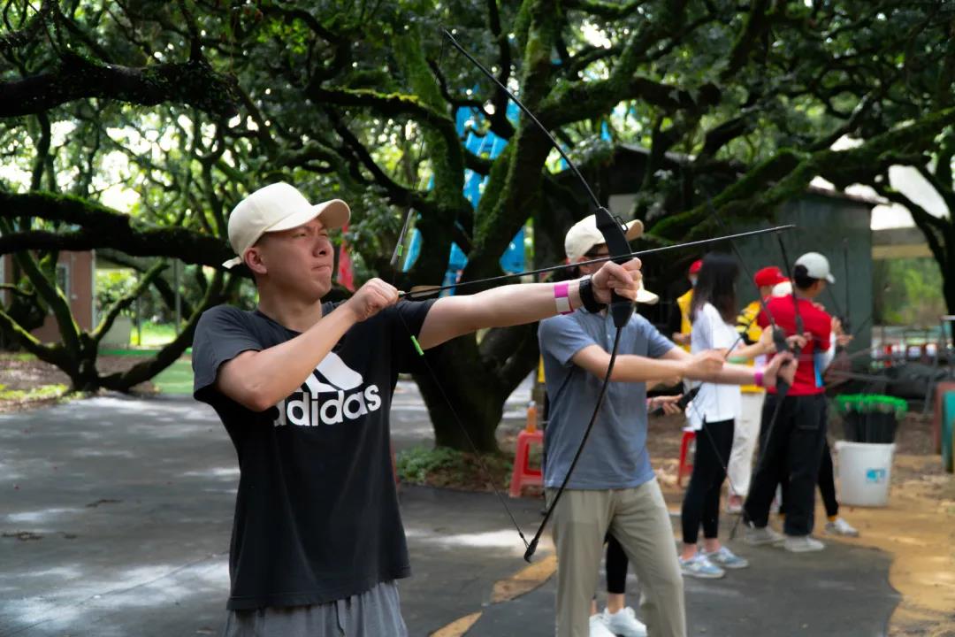 五個(gè)小組分別輪流體驗(yàn)電動(dòng)越野車和射箭項(xiàng)目,體驗(yàn)完畢后隊(duì)伍之間進(jìn)行了積分制的比賽。