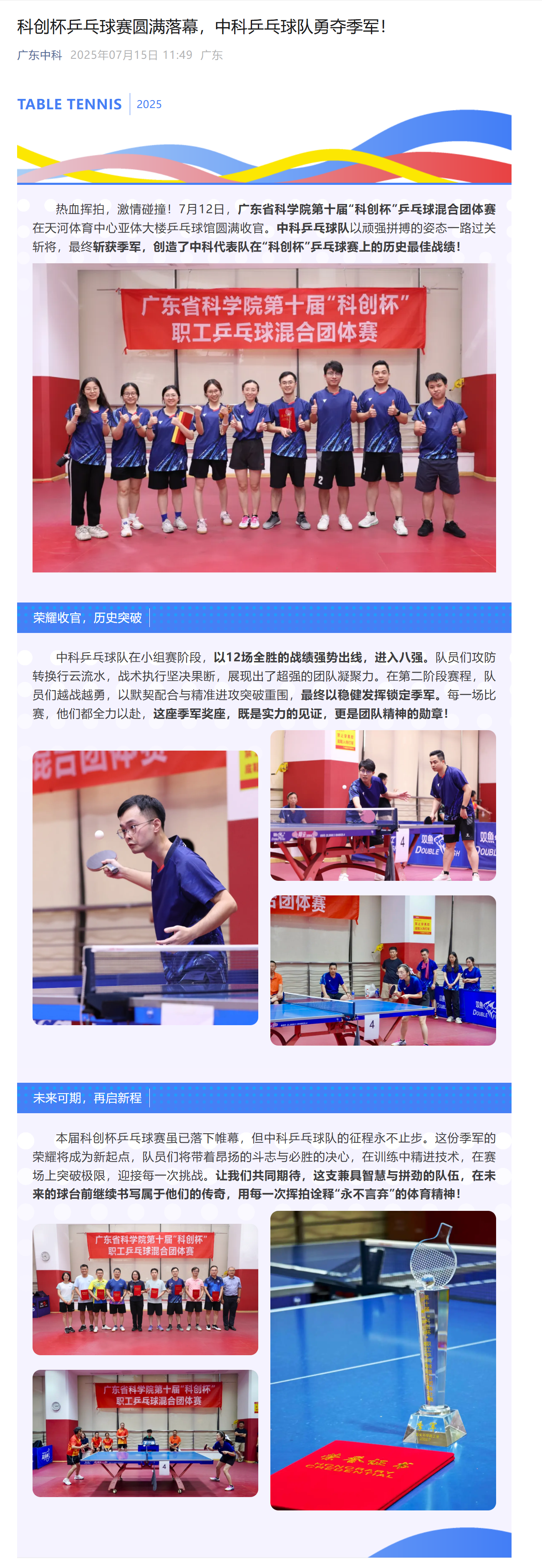 科創(chuàng)杯乒乓球賽圓滿落幕,中科乒乓球隊(duì)勇奪季軍!